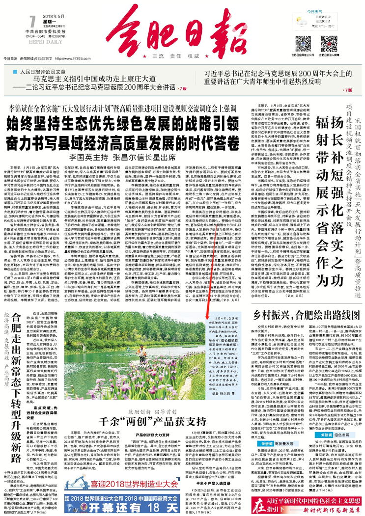 5月7日《合肥日报》头版报道由我司承担治理的塘西河项目