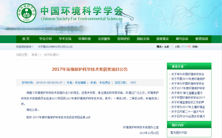 近日,中国环境科学学会官网发布了《2017年度环境保护科学技术奖获奖项目公告》。国祯环保参与研发的“高排放标准下AAO污水处理工艺技能降耗关键技术与集成示范”项目荣获二等奖。