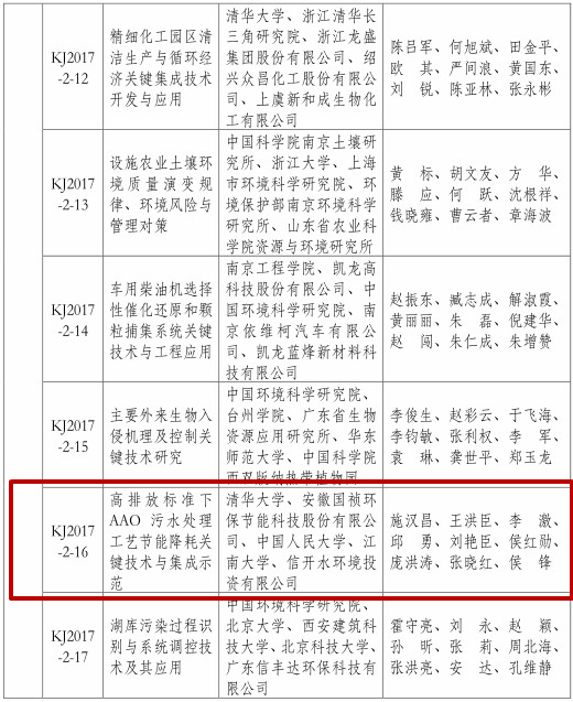 公司“高排放标准下AAO污水处理工艺节能降耗关键技术与集成示范”项目荣获2017年度环境保护科学技术奖二等奖