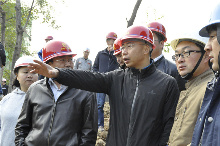 领导一行在京台高速处初期雨水调蓄工程项目部调研