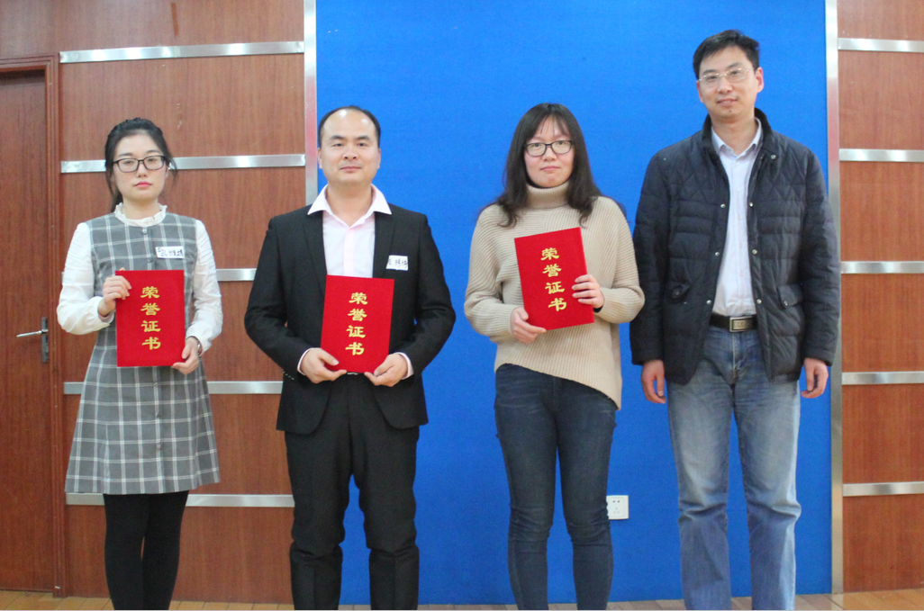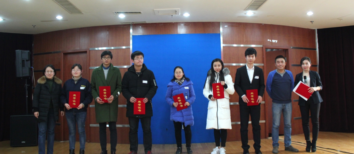 人事总监谢娅和总经理助理徐辉为获得优秀奖的选手颁奖并合影
