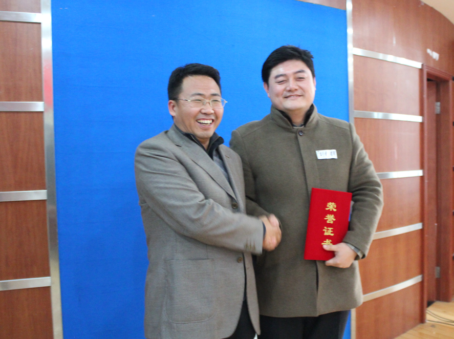 总经理韩洪彬为获得一等奖的选手颁奖并合影