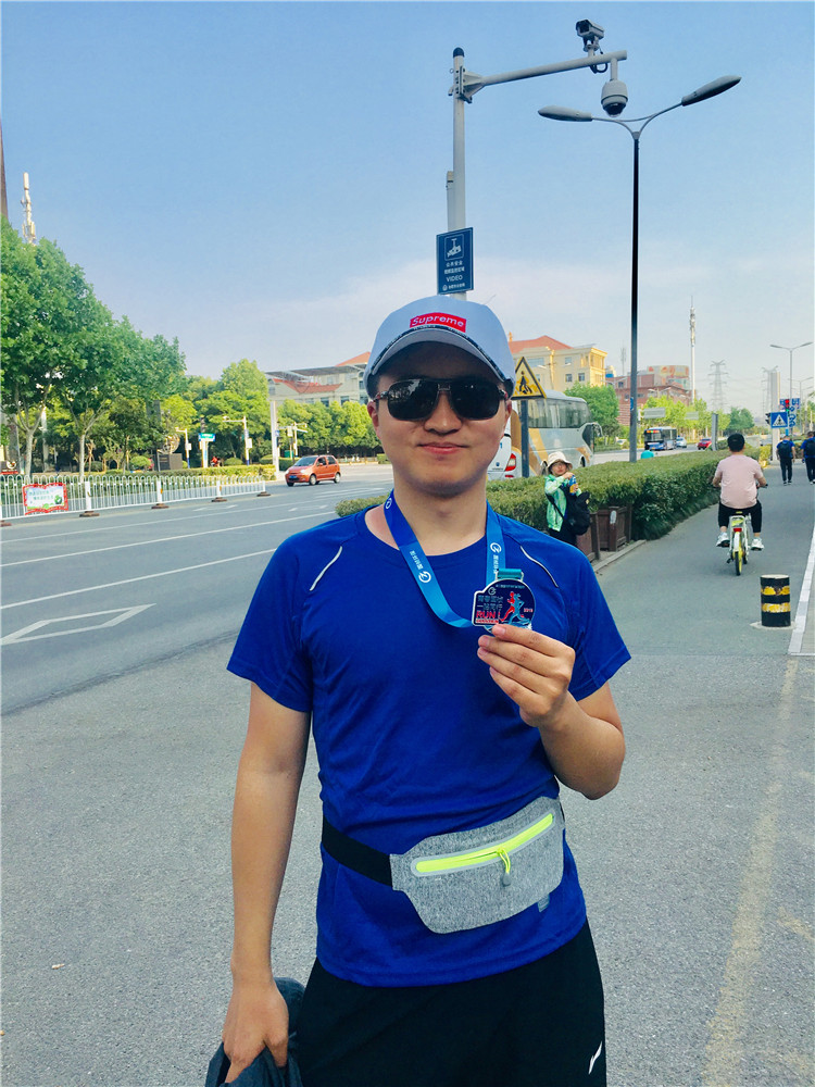 拿到了用汗水换回的纪念奖章