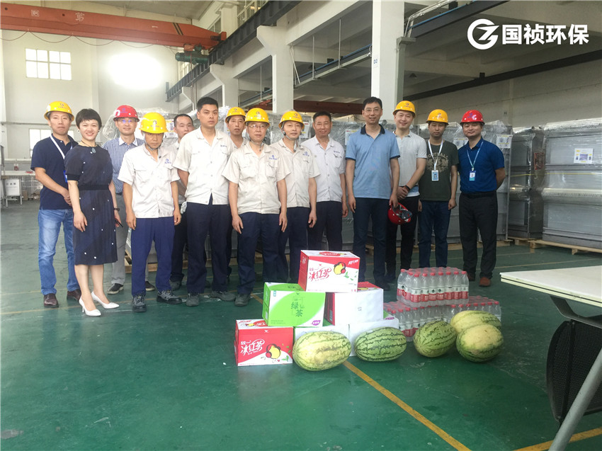 8月7日,国祯环保总经理石小峰、监事会主席陈会武、经营副总监赵玉香等一行来到膜科技、设备制造事业部生产车间,将防暑降温用品一一送到一线员工手中,详细询问车间的防暑降温措施,嘱咐大家要做好安全教育、遵守安全规章,要将安全工作抓实抓细,希望大家要齐心协力做好防暑降温工作,确保高温季节安全生产稳定。