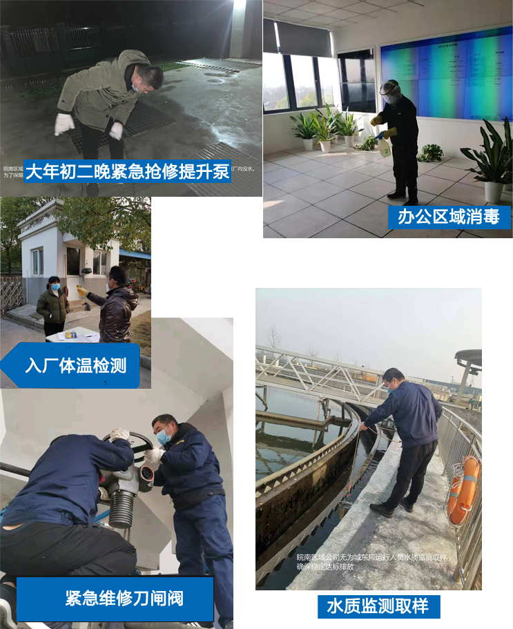 各区域公司员⼯在疫情防控期间坚守岗位,做到守岗有责、守岗担责、守岗尽责,以最严的要求、最⾼的标准、最实的措施,确保全国100多座污⽔处理⼚日处理规模近600万吨全部⽔质达标排放,绝不让一滴不达标污水排放到河流。