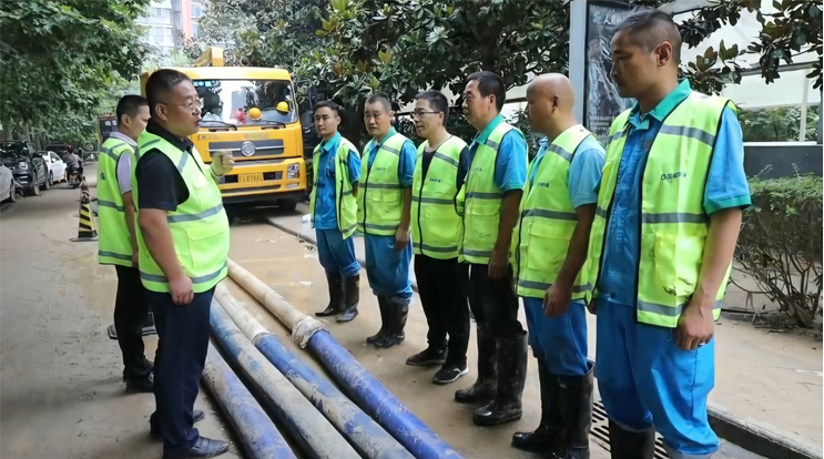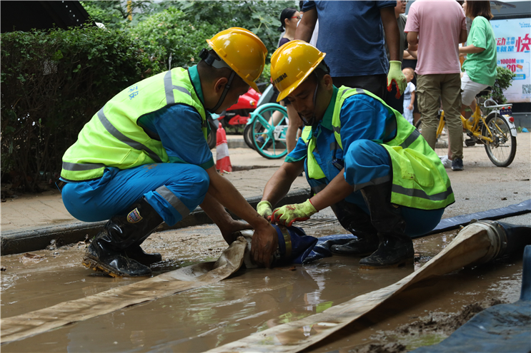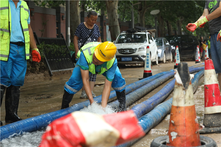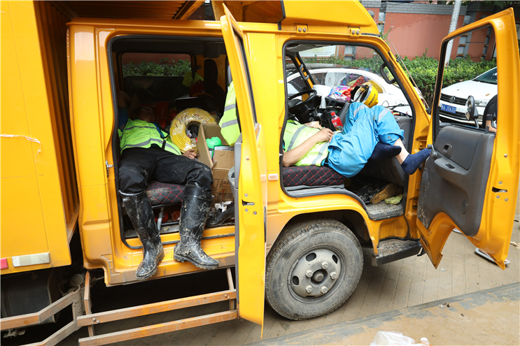 7月23日6点,中节能国祯抽调6名专业工程人员组成第二突击队,携带3辆皮卡巡查车、4台抢险泵奔赴河南。11时与第一突击队汇合,共同参与郑州隆福国际小区地下车库排涝作业。