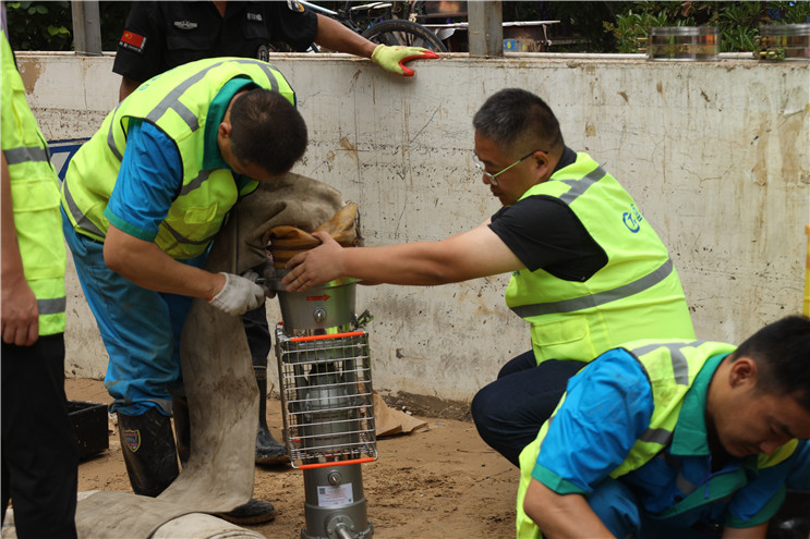 7月23日凌晨3点应急抢险队抵达郑州市,与当地政府主管部门交接后,立即前往郑州市火车站对地下人行通道进行抽水作业。7月23日10点中节能国祯第一突击队已将郑州市火车站地下人行通道积水抽取干净,根据指挥部安排前往郑州隆福国际小区地下车库排涝作业。