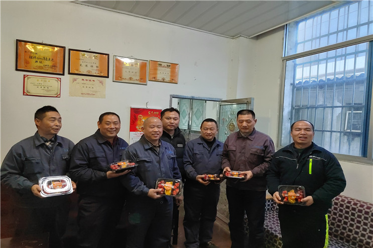 “新年好!给大家拜年啦!”伴随着温暖的话语,当日上午,公司领导班子成员带着喜庆的笑容、热情的问候走进本部各部门、基层各单位,深入车间、班组,向广大干部职工拜年,为大家送去新春的祝福和节日的问候,并向一线员工送上寓意“‘橙’意开年‘莓’好将至 ”的蛋糕。