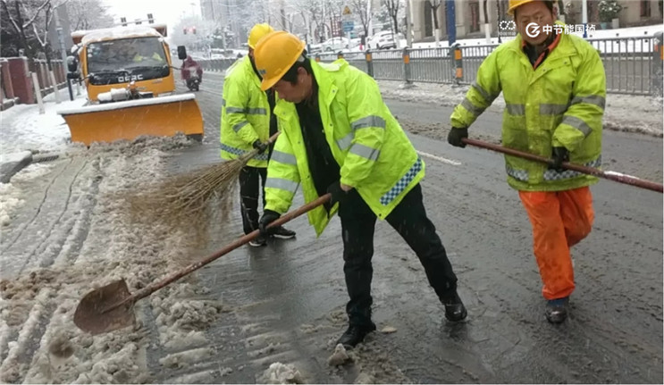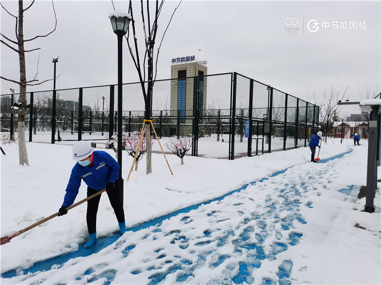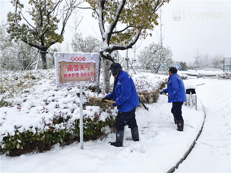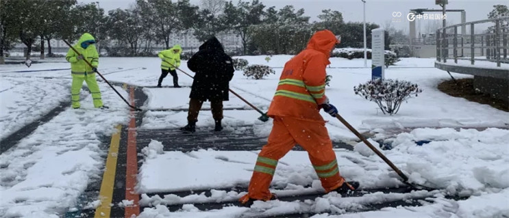 合肥区域胡大郢污水处理厂清扫地上公园积雪
