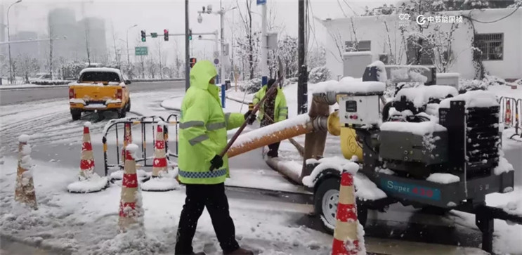 管网事业部肥西经开项目部出动综合铲雪车清除路面积雪并疏通重点区域管道