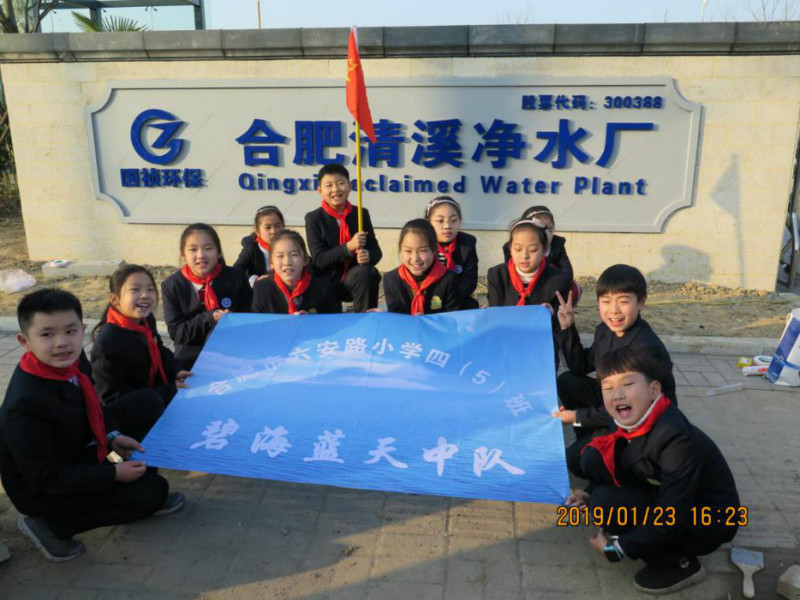 1月23日下午,“碧海蓝天”中队全体队员在老师的带领下,参观了安徽首座全地埋花园式污水处理厂——国祯环保合肥清溪净水厂。