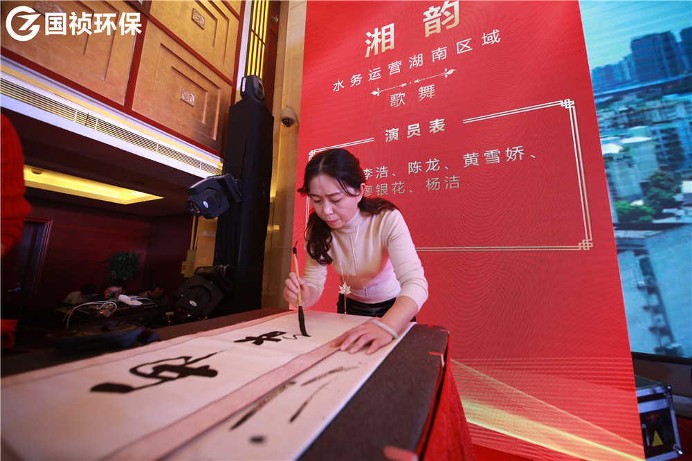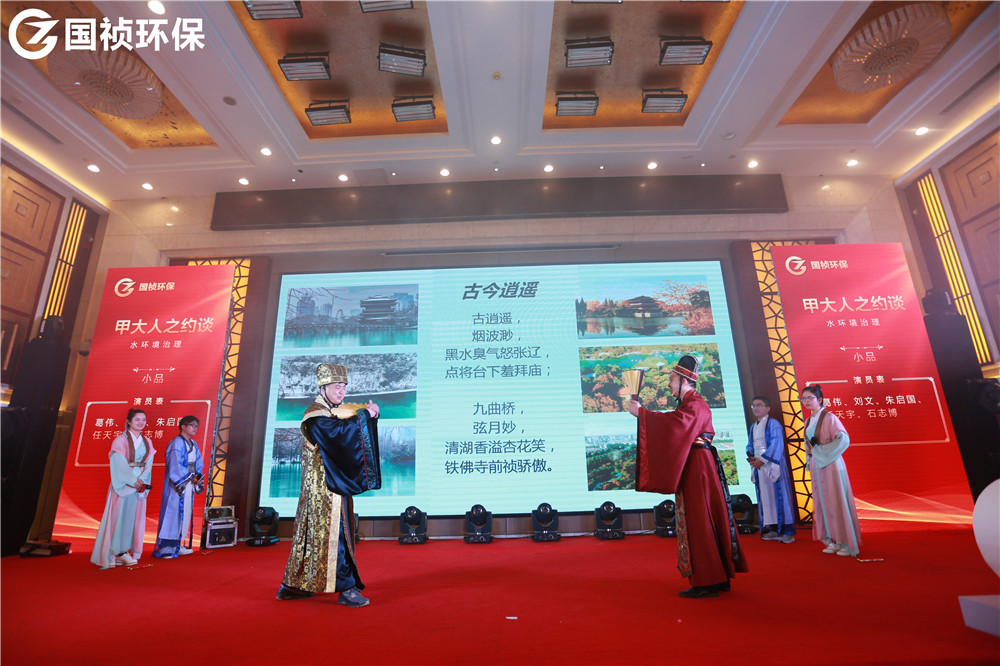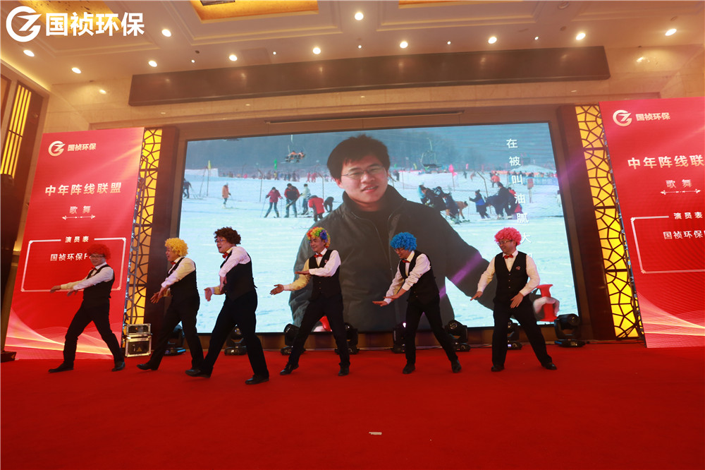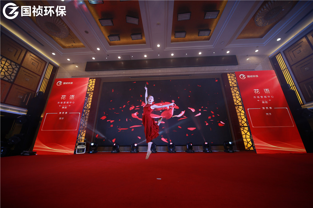颁奖典礼也穿插了很多表演节目。贝斯、打碟、神曲……什么流行来什么,怎么专业怎么玩!一则《热舞串烧》迅速点燃气氛。《湘韵》巧妙将朗诵、书法、舞蹈、独唱合为一体,《花语》《家乡美》《九九女儿红》等演员舞姿曼妙,《平凡之路》《成都》《海阔天空》《友谊之光》等歌曲余音绕梁、悦耳动听,诗朗诵《麦王传情、光耀大地》情感热烈饱满;手语表演《夜空中最亮的星》向所有献身环保公益事业的人致敬;《不差钱》《辩论赛》《国祯好声音》等语言类节目包袱满满,让宴会厅充满欢声笑语。《国祯新闻联播》作为唯一一个连续四届登上“国祯春晚舞台”的小品,每年都说“再也没有下一届”,可每年都上演大型“真香”现场。《甲大人之穿越》中描绘国祯环保项目的诗文竟然是全部出自公司副总经理、水环境治理事业部总经理王立余之手,真是才华横溢、满腹经纶。由C位出道、超人气男团“国祯F6”倾全力打造的《中年阵线联盟》节目引得大家欢呼不断、鼓掌不停,观众宛如新闻发布会记者,恨不得将整段节目一秒不差全都记录下来,现场热闹气氛也达到了高潮,颁奖典礼最终在《我爱你国祯》的高亢优美女高音中落下帷幕。