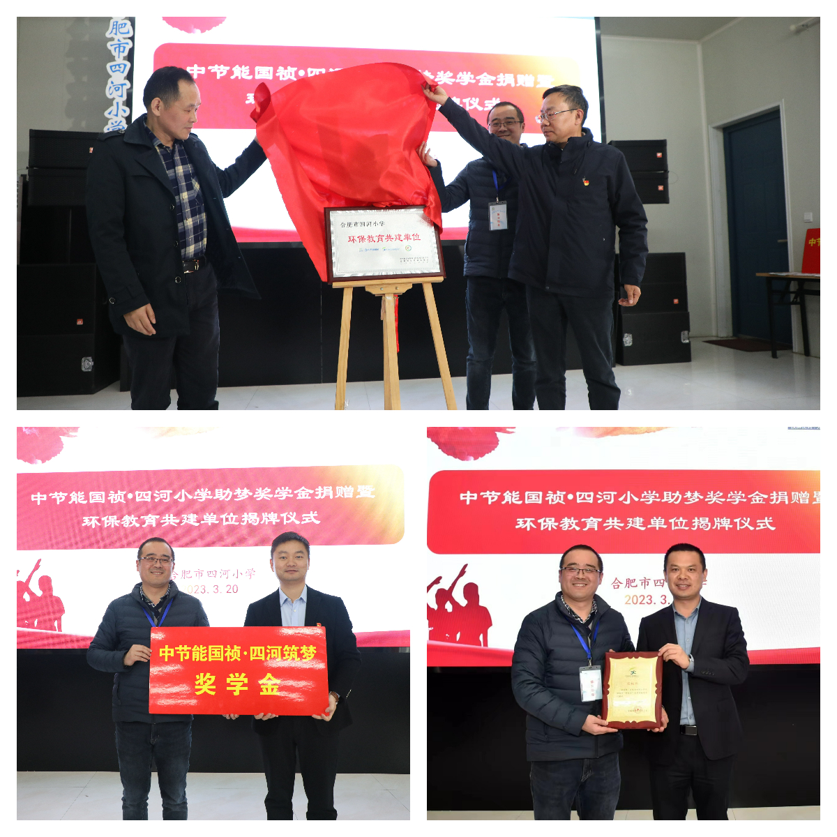 在第31届“世界水日”来临之际,中节能国祯·四河小学助梦奖学金捐赠及环保教育共建基地揭牌仪式在合肥市四河小学举行。庐阳区农林水务局、教体局及中节能国祯、国祯慈善基金会、四河小学相关人员参加了本次活动。
