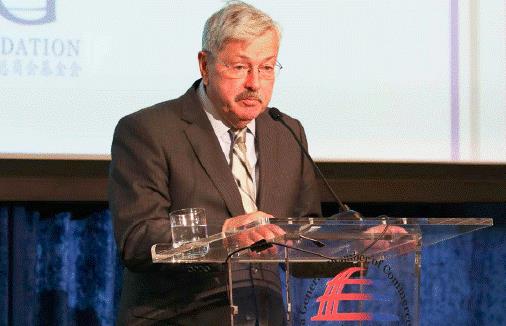 美国驻华大使Terry Branstad在招待会上发表讲话